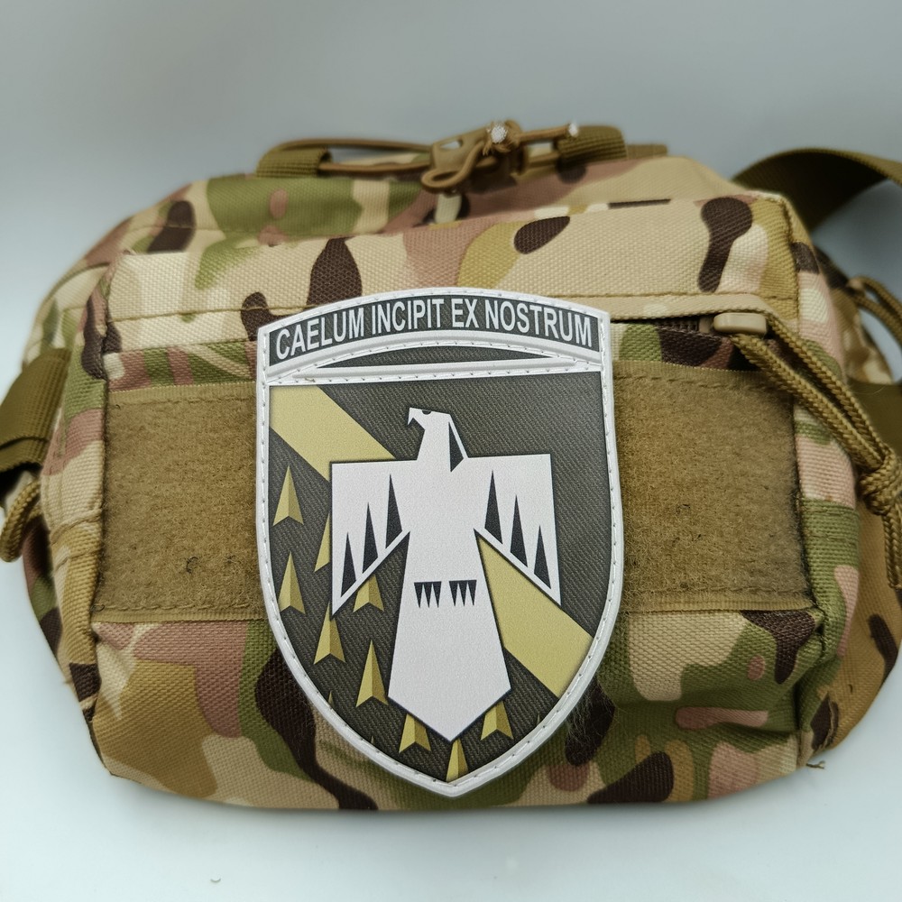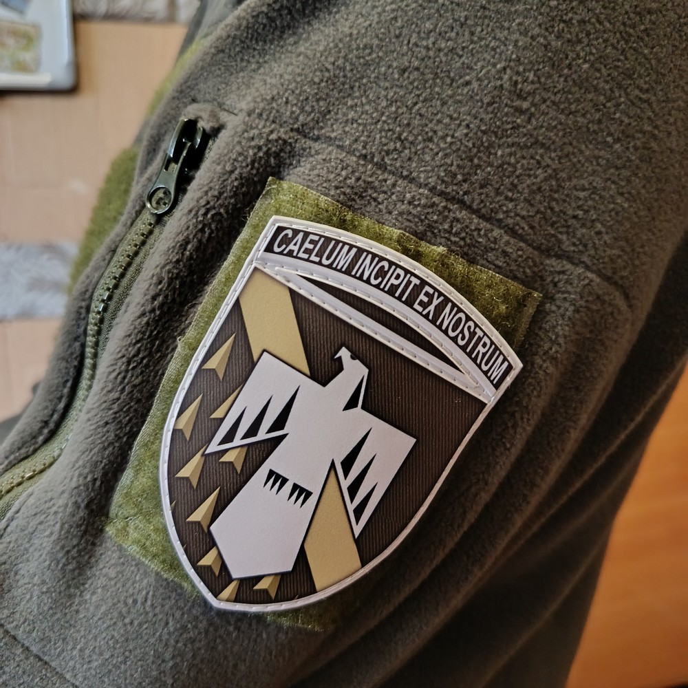Шевроны изготовлены из ПВХ непосредственно на нашем производстве. Мы самостоятельно разрабатываем форму, макет, отливаем и окрашиваем изделия. После чего пришиваем липучку и упаковываем готовое изделие.
